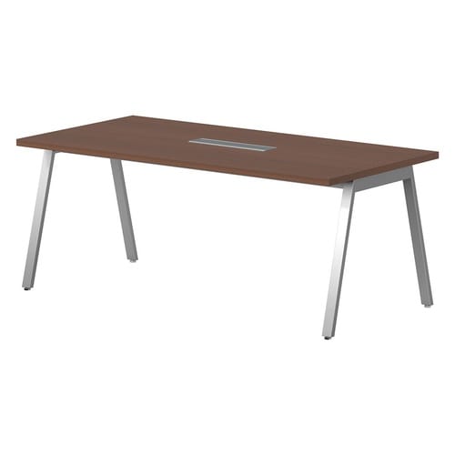 ミーティングテーブル BSYテーブル 幅1800×奥行1000×高さ720mm ワイヤリングBOX付 天板/ウォールナット、脚/シルバー BSY−S1810W−WN 1台【メーカー直送/お客様組立】