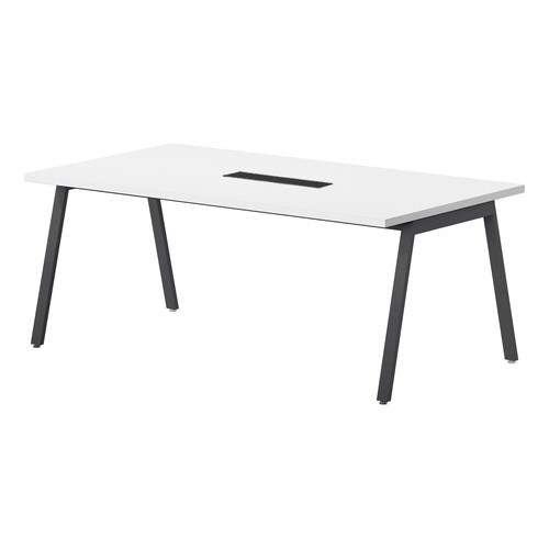 ハの字脚でバランスが良く、安定感のあるミーティングテーブル。サイズのラインナップが多く、オフィスなどのオープンスペースで人気のモデルのワイヤリングボックス付きタイプ。 |