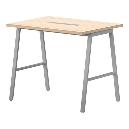 ハイテーブル BSYテーブル 幅1200×奥行900×高さ1000mm ワイヤリングBOX付 天板/ライトオーク、脚/シルバー BSY−S1290HW−LO 1台【メーカー直送/お客様組立】