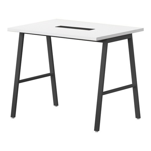 ハイテーブル BSYテーブル 幅1200×奥行900×高さ1000mm ワイヤリングBOX付 天板/オフホワイト、脚/ブラック BSY−B1290HW−OW 1台【メーカー直送/お客様組立】