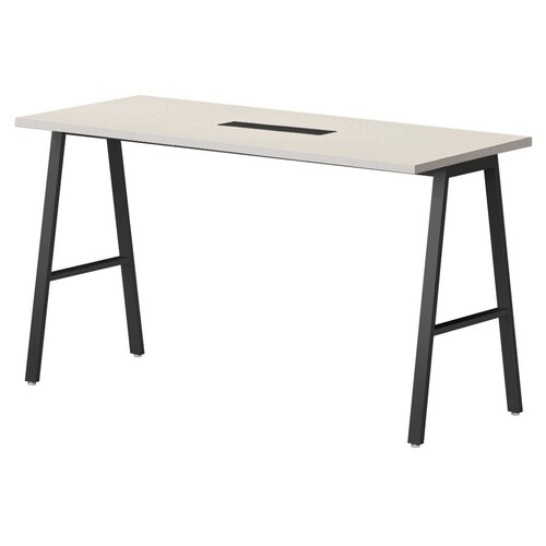 ハの字脚でバランスが良く、安定感のあるミーティングテーブル。サイズのラインナップが多く、オフィスなどのオープンスペースで人気のモデルのハイタイプ(ワイヤリングボックス付き)です。 |