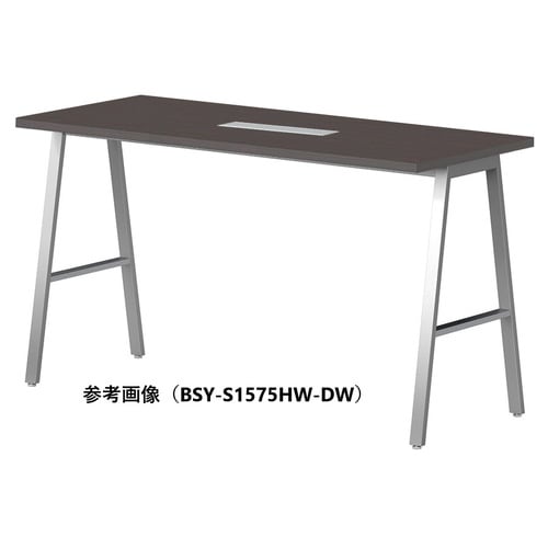 ハイテーブル BSYテーブル 幅2100×奥行900×高さ1000mm ワイヤリングBOX付 天板/ダークウッド、脚/シルバー BSY−S2190HW−DW 1台【メーカー直送/お客様組立】