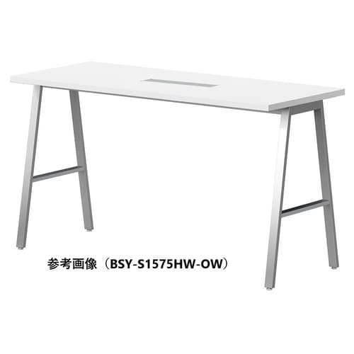 ハイテーブル BSYテーブル 幅2100×奥行900×高さ1000mm ワイヤリングBOX付 天板/オフホワイト、脚/シルバー BSY−S2190HW−OW 1台【メーカー直送/お客様組立】