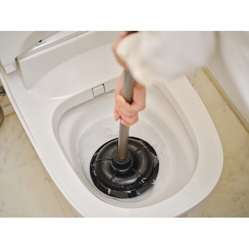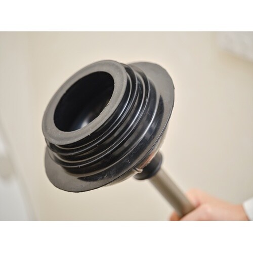トイレのつまりとり。ローレット加工の持ち手で握りやすく力が入りやすい。4つのリングが便器に密着し、隙間を作らずごっそり吸引。 |
