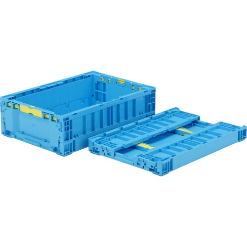 折り畳めるコンテナーです。折りたたむと容積が約1/4になり、物流コストの低減、流通の効率化をサポートします。