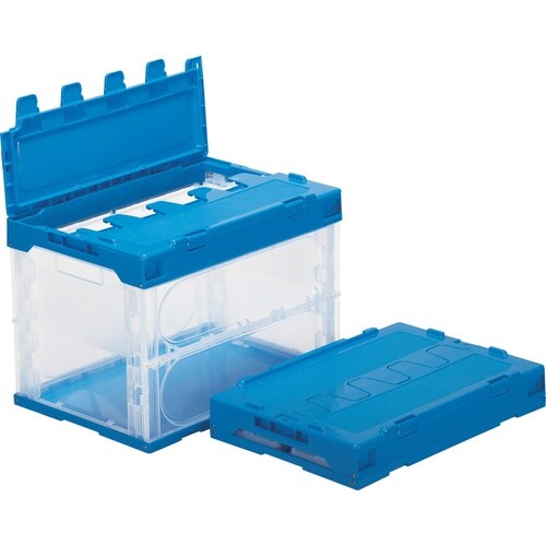 一体型のフタ付きオリコンです。折りたたむと容積が約1/4になり、物流コストの低減、流通の効率化をサポートします。