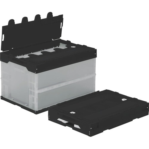 一体型のフタ付きオリコンです。折りたたむと容積が約1/10になり、物流コストの低減、流通の効率化をサポートします。 |