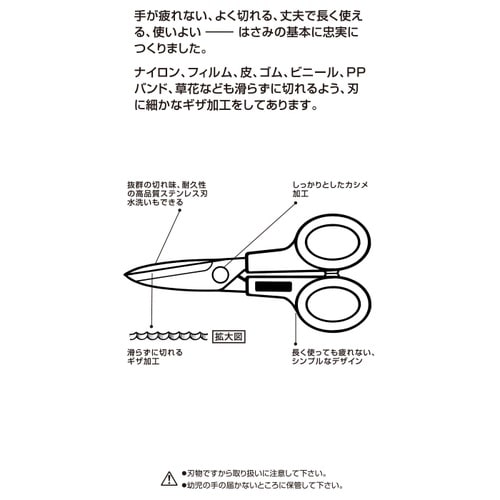 丈夫に仕上げたステンレス刃の家庭用万能はさみです。 |