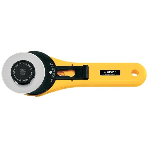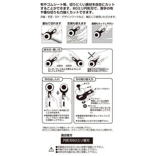 厚物や重ね切りに適した直径60ミリ円形刃を装着したロータリーカッターです。 |