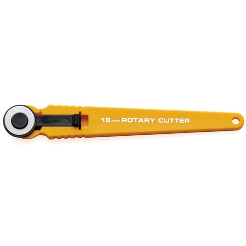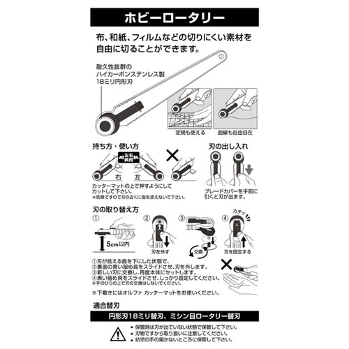 小さなカーブも自在に切れるステンレス製直径18ミリ円形刃を装着したロータリーカッター。 |
