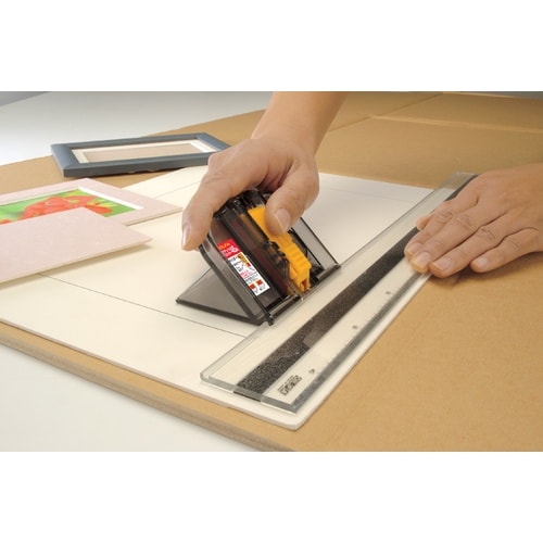 新しい機能と専用定規が付いて簡単きれいに45度カットできる額装マット専用カッター。 |