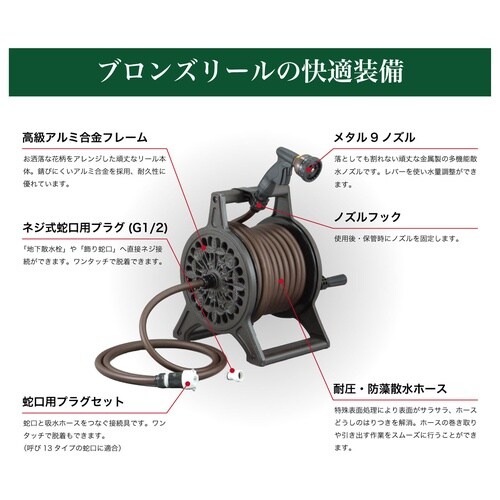 優れた耐久性・安定性・操作性のアルミ鋳物のホースリールです。