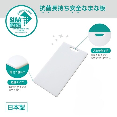厚み1cm軽くて扱い易い抗菌まな板。抗菌JIS規格適合品。マーク入りで扱い易い。 |