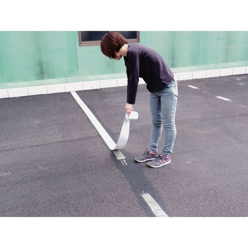駐車場などの路面に専用のシートを設置後、バーナーで加熱し溶着させる路面標示材です。