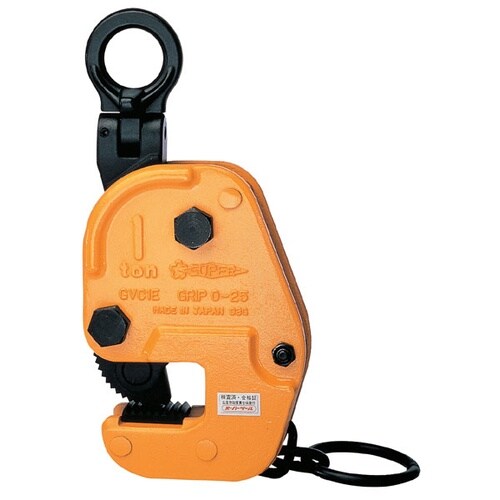 構造用形鋼(H形、I形、T形、L形鋼等)や平鋼板の横(水平)吊クランプ。 |