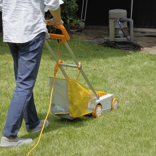 ロータリー式強力トルクで長い芝の刈り込みもスムーズ回転・停止が一目でわかる回転スコープ付 |