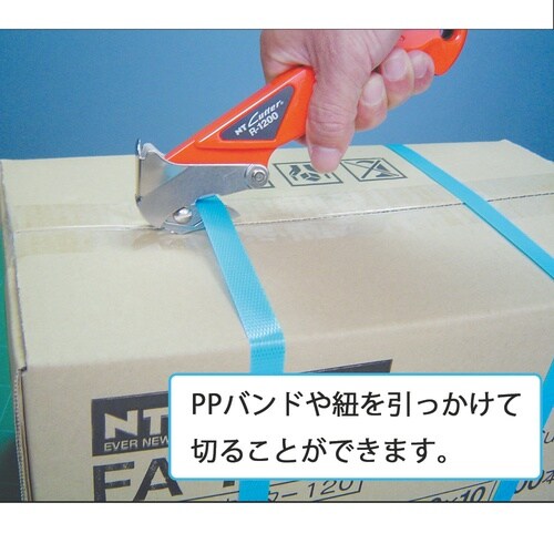 PPバンドや紐をひっかけて切る荷ほどき専用カッター。 |