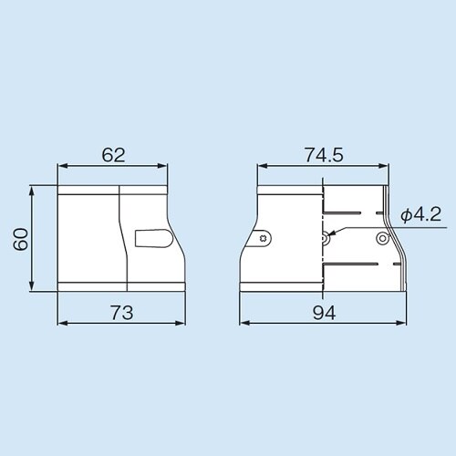 コストパフォーマンスに優れたスリムダクトLD−70とLD−90の異径ダクトをジョイントできます。 |