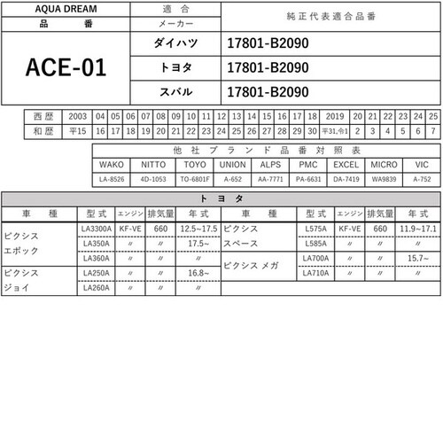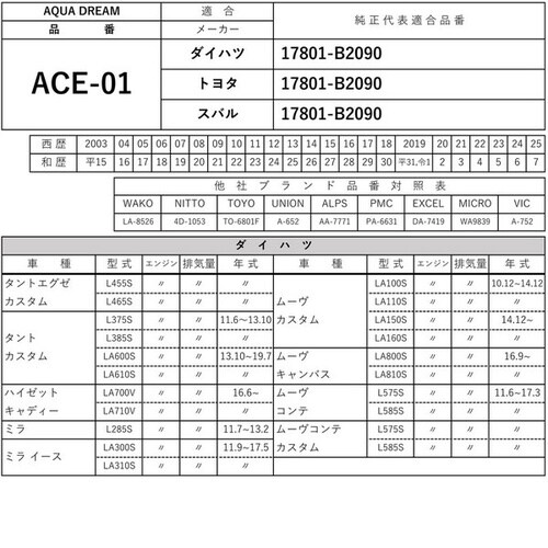 AQUA DREAM PLATINUMエアフィルターは不純物を効果的に除去し、常にクリーンな空気を供給。燃焼効率を高め燃費向上に貢献。定期交換でエンジン性能を維持し、長寿命化をサポートします。 |