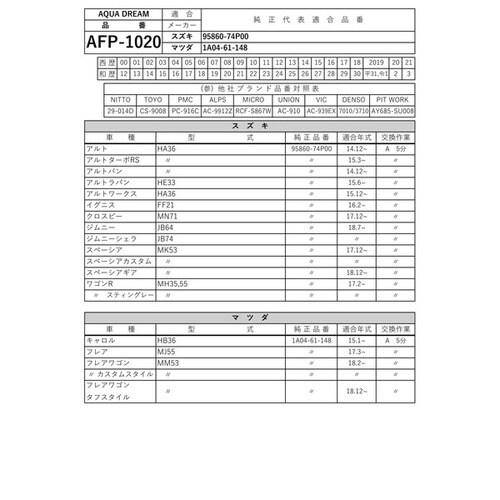 AD−AFP−1020−10 PLATINUM カーエアコンフィルター 主な対応車種:スズキ、マツダ用 銀イオンで抗菌効果 除塵 脱臭 風量効果/10個セット