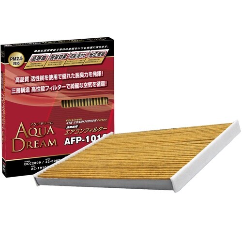 AQUA DREAM PLATINUMエアコンフィルターは三層構造で高除塵・脱臭・抗菌を実現。PM2.5や花粉を除去し、活性炭層が臭いを吸収。車内を清浄に保ち、快適な空間を維持します。 |