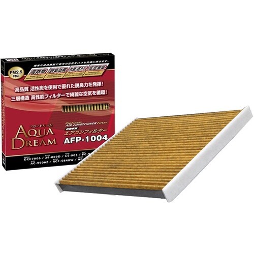 AQUA DREAM PLATINUMエアコンフィルターは三層構造で高除塵・脱臭・抗菌を実現。PM2.5や花粉を除去し、活性炭層が臭いを吸収。車内を清浄に保ち、快適な空間を維持します。 |