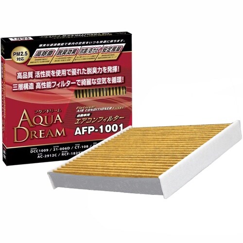 AQUA DREAM PLATINUMエアコンフィルターは三層構造で高除塵・脱臭・抗菌を実現。PM2.5や花粉を除去し、活性炭層が臭いを吸収。車内を清浄に保ち、快適な空間を維持します。 |