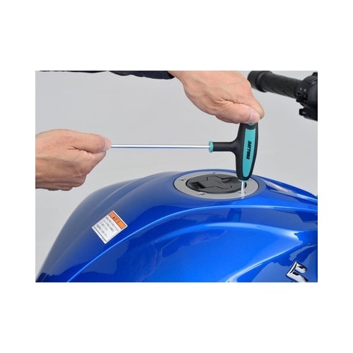T型ハンドルでしっかり力を伝える4mm六角レンチ。奥まった六角穴ボルトの脱着に便利で作業効率を向上。クロムバナジウム鋼を採用し高耐久を実現、整備に欠かせない実用性の高いツールです。 |