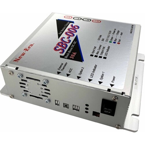 ニューエラ昇降圧方式を採用した走行充電器は電圧変動下でも安定充電が可能で低電圧や過電圧保護、温度保護、逆接保護を備え、リチウムイオンやディープサイクルなど多様なバッテリーに対応します。 |