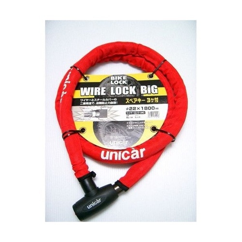 22mm径の極太ワイヤーにスチールカバーを組み合わせた二重構造で高い盗難防止力を発揮し、長さ1800mmのロングサイズで鍵穴シャッターカバー付き、スペアを含めキーが3本付属します。 |