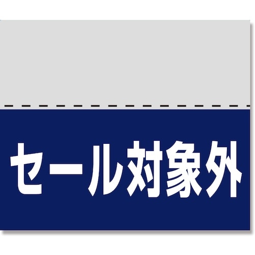 商品タグの裏面などに貼付して、セール対象外商品であることをアピールするラベルです。上から10mmの部分にミシン目が入っており、ミシン目より上のみに糊がついています。 |