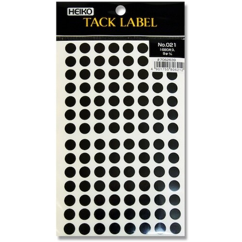 直径9mmのシンプルな黒い丸いシールです。ちょっとしたアクセントや、他色と組み合わせて分類の目印などに。 |
