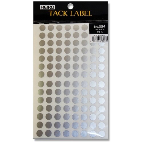 直径9mmのシンプルな銀色の丸いシールです。ちょっとしたアクセントや、他色と組み合わせて分類の目印などに。 |