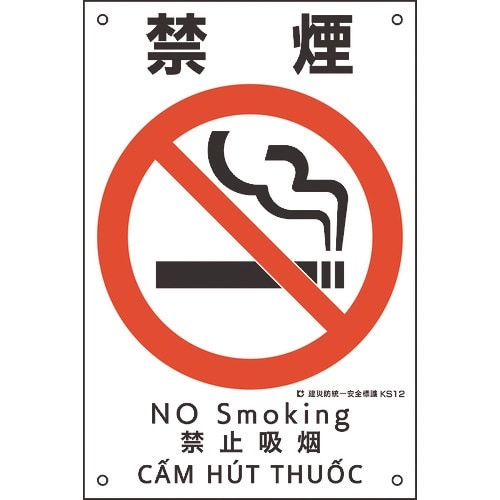 緑十字 建災防統一安全標識 禁煙 KS12 450×300mm ポリプロピレン 081012 1枚