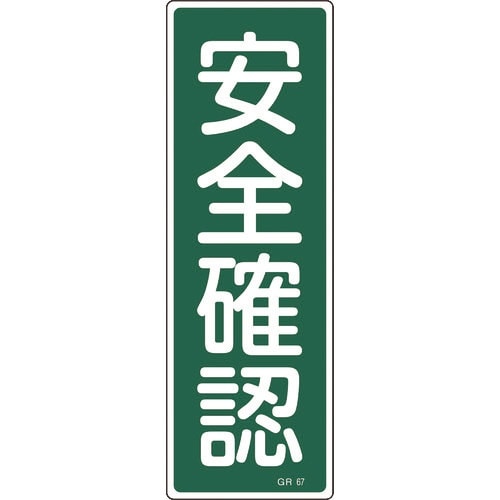 日本緑十字社 緑十字 短冊型安全標識 安全確認 GR67 360×120mm エンビ 縦型 093067 1枚 A01F-6886
