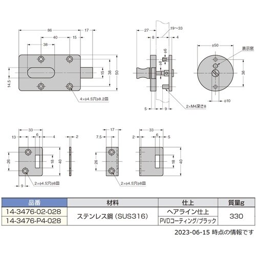 優れた耐食性を誇るステンレス鋼SUS316を使用しています。同じ仕上の引戸用カマ錠もあります。 |