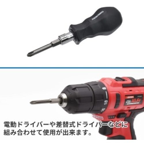 | 注意事項 | ※インパクトドライバーなど衝撃を与える工具は、破損する恐れがありますので使用しないで下さい。ビットの取り付けは確実に行って下さい。ビットのサイズに合ったネジに使用して下さい。 |