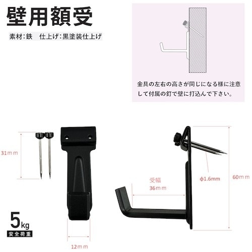 壁面取付用の額受けです。細釘で木壁・石膏ボードに使用できます。