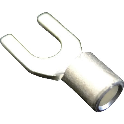 接触面(舌部)の取り付け穴の一方が開いており、ねじを完全に外さなくても取り付けることができる裸圧着端子です。軟銅のより線または、単線の電線の接続に。 |