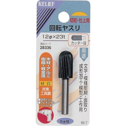 イチネンアクセス RELIEF 回転ヤスリ カッター目 φ6mm軸 12φ×23t (炭素工具鋼) 28336 1個 A01G-7046