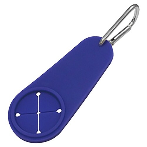 本体サイズ(mm):約100×45 | カラビナサイズ(mm):約45×24 | ホールサイズ(mm):約34φ | 色:青 | 材質・仕上げ:シリコ…