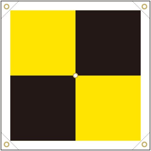 ドローン測量用の対空標識です。軽量で持ち運びしやすいいターポリン素材を使用しています。4スミに設置用のピンをさせる穴と中心に測量用鋲をさせる穴を設けています。工事現場等に。 |