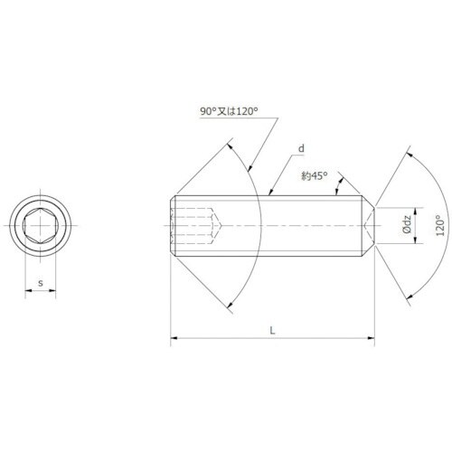 寸法(mm)d:M2 | 寸法(mm)L:4 | ねじピッチ(mm):0.4 | 六角穴対辺寸法(mm):0.9 | 先端形状:くぼみ先 | 全長(m…
