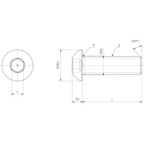 丸型形状の頭部で六角穴付きですので、小ねじより強く締付けることができます。六角穴は、六角穴付ボルトより一回り小さくなっています。合金鋼に熱処理を施し強度を高くしてあります。 |