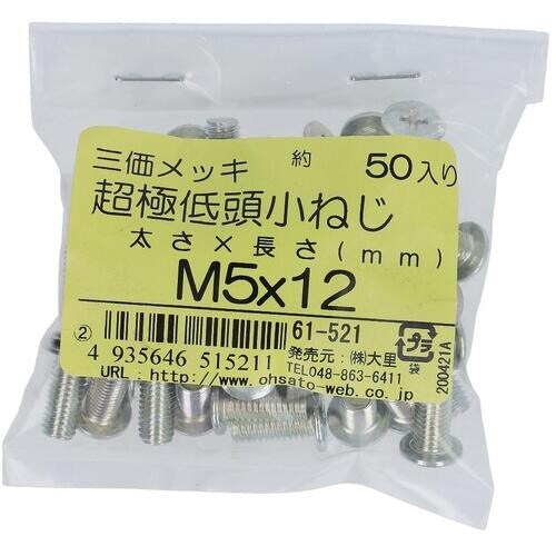 OHSATO OHSATO 三価メッキ超極低頭小ねじM5X12(50入) 61521 1Pk(50本) A01H-3571