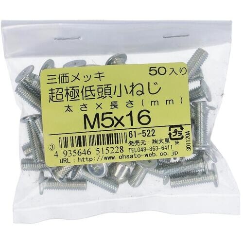 OHSATO OHSATO 三価メッキ超極低頭小ねじM5X16(50入) 61522 1Pk(50本) A01H-3572