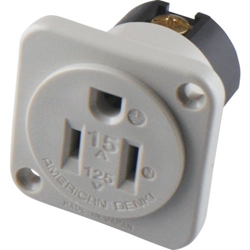 NEMA規格5−15互換品です。コンパクトな機器用アウトレットです。電線接続方式は圧着端子式です。 |