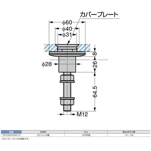 スパイダーロッドと組み合わせて使用します。ガラスは正面から六角棒スパナ(呼び6)で固定するため、ポイントフィックスを固定後、ガラスの取り付けができます。 |