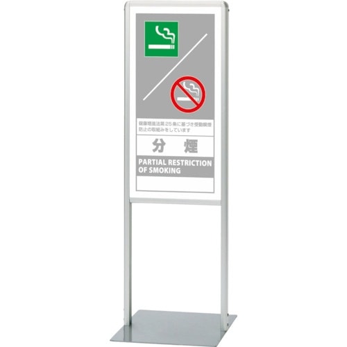 健康増進法第25条に基づいた受動喫煙防止箇所を明示する標識です。屋内の禁煙場所などへの設置に最適なスタンドタイプの標識です。受動喫煙防止場所の表示に最適です。 |