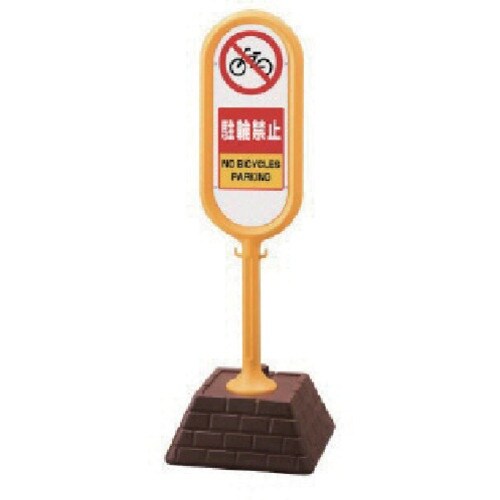 表示内容:駐輪禁止 NO BICYCLES PARKING | 摘要:(イエロー)両面 | 寸法(mm):本体・450×450×1300H・標識・60…
